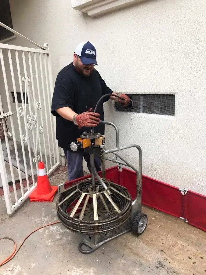 Our Mount Pleasant plumber inspects the clogged drain — checking the cleanout access, running a camera for main line blockages, or assessing the drain type and flow to determine whether snaking or hydro-jetting is the appropriate approach.